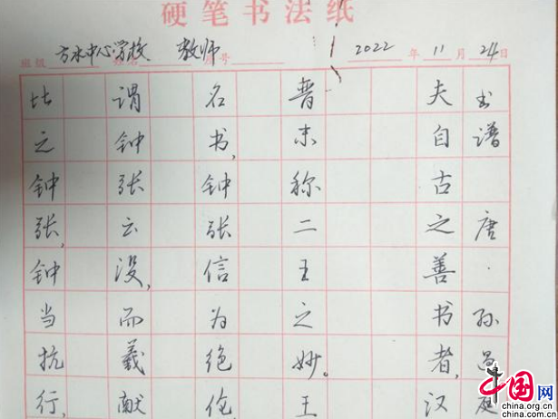 中国网讯 为了进一步提升乡村教师综合素养,倡导教师传承中国书法文化,展示教师良好教学涵养和优雅风采,为学生的书写做优秀表率,近日,宜宾市翠屏区方水中心学校工会开展“勤学苦练三笔字,琢玉教师展风采”训练活动。