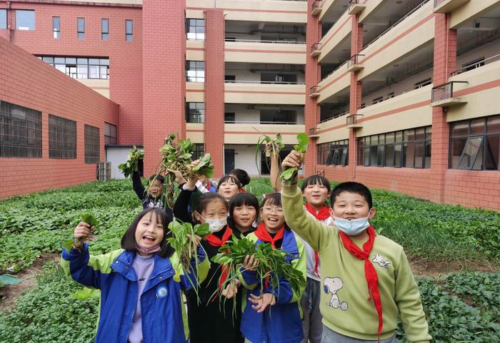 据悉,自贸区实验学校非常重视学生的劳动教育和生命教育,乐耘小田地每个班级承包一块,学校不仅提供肥料,还请有经验的李晓林老师专门指导班级如何播种。田地里的蔬菜都是孩子们和老师一起翻地、播种的,午餐结束后、下课时,乐耘田里总能看到孩子们浇水,拔草的身影。