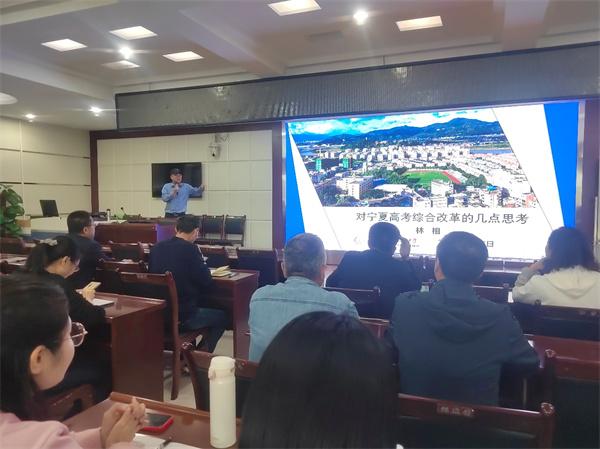 2022年2月17日,习近平总书记亲自圈阅同意宁夏等8省区启动第五批高考综合改革,从2022年秋季入学的高中一年级学生开始,实施普通高等学校考试招生综合改革。对于刚进入高考综合改革的地区来说,对新课改和新高考了解较少,教师的教育理念如何更新,如何快速适应改革需求等,均存在一些问题。林相校长从实际需求出发,9月7日,为固原五中行政领导、教研(集备)组长、全体高一年段教师等做了题为《对宁夏高考综合改革的几点思考》的专题讲座。