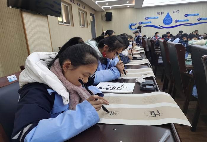 赛场上,学生们全神贯注地书写,一板一眼,每一笔、每一划,都是小心翼翼,纸上留下了同学们稚嫩而又工整的字迹,洋溢着笔墨之香、向上之风!