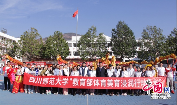 中国网12月19日讯(李晓怡)为进一步推进四川师范大学“教育部体育美育浸润行动计划”走深走实,日前,四川师范大学教务处、语言文字委员会办公室、音乐学院、体育学院、美术学院·书法学院、舞蹈学院、文学院、影视与传媒学院成立体育美育浸润行动计划项目组,共赴凉山彝族自治州普格县夹铁镇中心校和瓦达洛小学开展体育美育浸润行动计划“体美浸心田 文化润彝校”暨“高雅艺术进夹铁校园”成果推广系列活动。