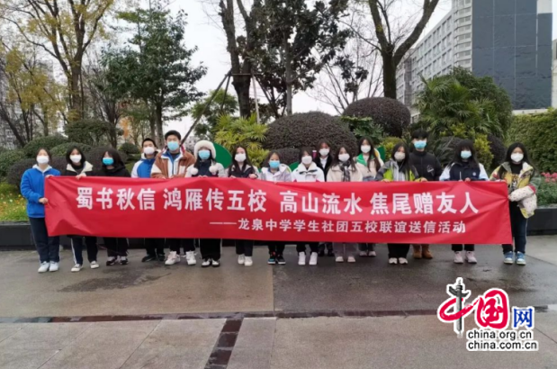 中国网1月5日讯(钟传亮)2022年11月1日至12月30日期间,以“蜀书秋信 鸿雁传五校 高山流水 焦尾赠友人”为主题的五校联谊送信活动在龙泉驿区五大学校(五校:龙泉中学、航天中学、龙泉二中、龙泉经实中、洛带中学)展开。本次活动由四川省成都市龙泉中学校心理健康中心与学生心理社团倾听者社主办,受到五校同学的热烈欢迎与一致赞誉。