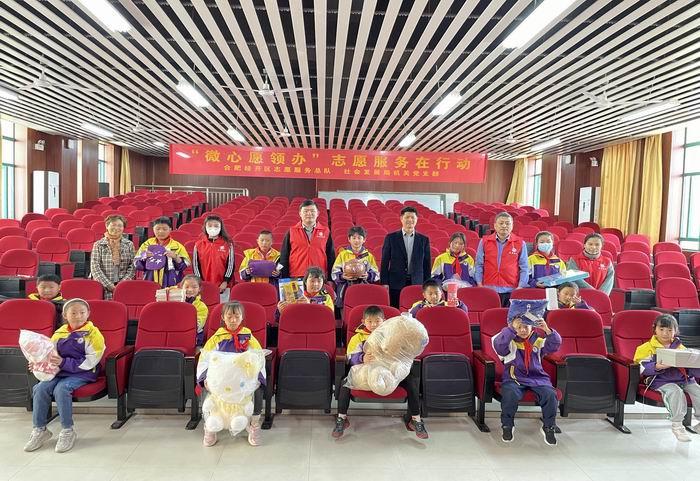 3月15日上午,经开区社发局党委委员、副局长杨会谦一行带着爱心礼包赶到洪店校区,开展“微心愿领办”为儿童圆梦活动。