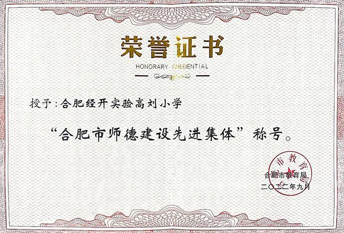 2022年9月,合肥经开实验高刘小学被授予“合肥市师德建设先进集体”称号。