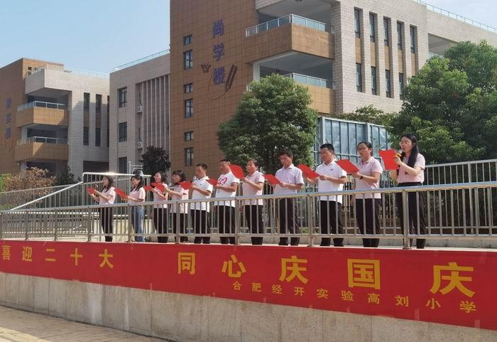国庆节前夕,为了激发青少年的爱国主义情感,进一步加强未成年人的思想道德建设,合肥经开实验高刘小学学生发展部(少年宫)开展了“喜迎党的二十大 同心庆国庆”主题画展等系列活动。老师们分年级组参加主题朗诵活动。