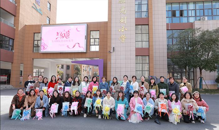 3月8日“妇女节”,高刘小学组织女教师在校园开个简短的庆祝会。