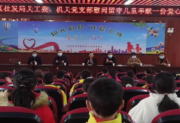 12月6日傍晚,合肥经开区社发局机关党支部、督导室、关工委几位领导赶到高刘小学洪店教学点慰问全体学生,开展爱心助学活动。几十包慰问品分发给全校学生,孩子们脸上洋溢着幸福的笑容。