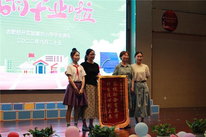 6月25日,高刘小学举办2022届六年级毕业典礼,学生家长向学校敬献锦旗。
