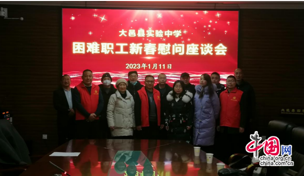 大邑县实验中学党总支部、工会开展2023年春节困难党员、困难教师慰问座谈会。学校党总支部书记李华清、工会主席邹正道、副校长李涛、党政办主任蒋林等行政领导和困难党员、困难教师参加座谈会。会议由邹正道主持。