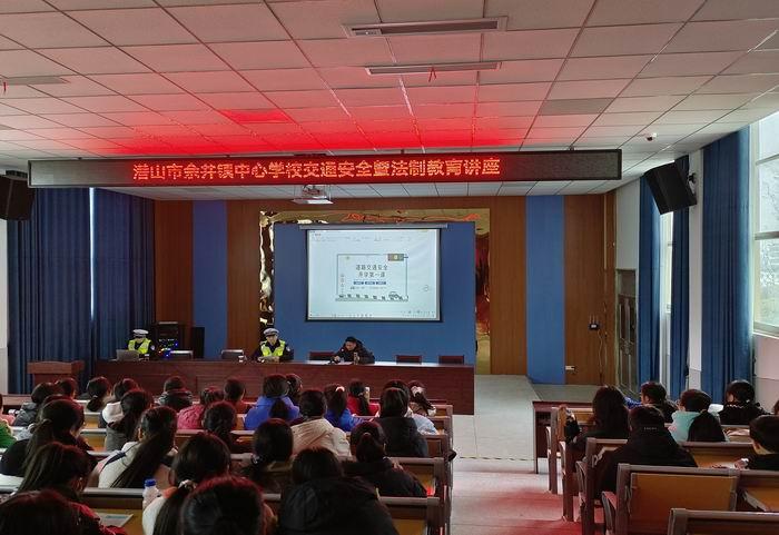为增强学生的法制意识,预防和减少交通安全事故的发生,营造校园法治文化氛围,打造平安和谐校园。2月9日下午,潜山市余井镇中心学校举办了2023年春交通安全暨法制教育知识讲座。特邀余井镇派出所刘翔、程俊两位警官到校宣讲。讲座活动由学校分管安全副校长胡焰红主持。