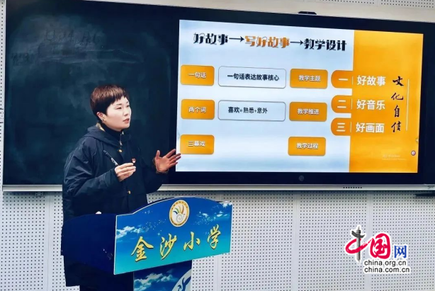 在研讨活动中,金沙小学各个学科组指向师生文化自信,提出学科组的解读,分享成功典型课堂教学案例,深度挖掘培养学生文化自信的三大源泉。从熟悉的金沙文化、天府文化为代表的家乡文化出发,致力于在优秀传统文化、红色的革命文化和社会主义先进文化的学习和探究中,寻找文化自信的根,增强课程思想性,从而构建符合我国特色的社会主义教育模式,完善传承中华传统文化的教学措施,为培养担当民族复兴大任的新时代接班人奠定坚实的基础。