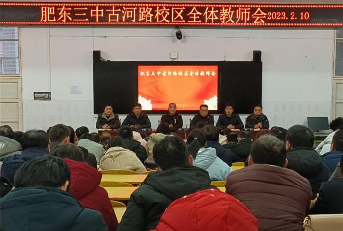 2月10日,肥东三中古河路校区全体教师会议在阶梯教室一召开。党委书记、校长周仁宏,古河路校区全体行政人员、教师参加会议。会议由政教处副主任张德强主持。