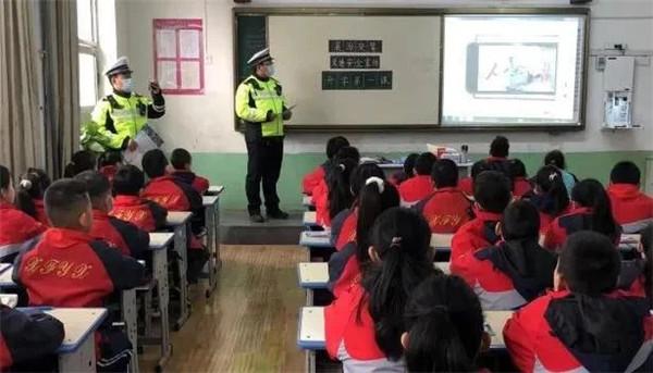 临汾市襄汾县第一小学邀请交警支队进校园、入课堂,开展了“交通安全开学第一课”宣讲活动,交警支队队员针对小学生交通安全意识薄弱等问题,深入课堂开展交通安全开学第一课教育,课间还向学生们发放了《交通安全手册》《未成人交通安全不容忽视》等宣传材料。