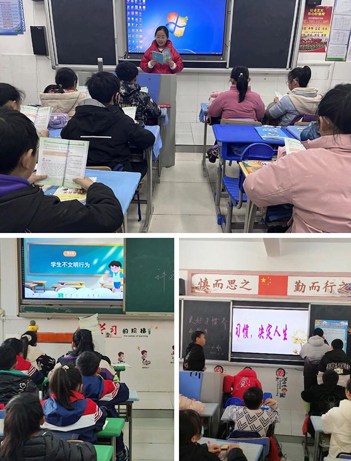 每周的主题班会上,班主任老师们带领学生们一起学习校本教材《好习惯伴我成长》,从学习习惯养成、文明习惯养成、健康卫生习惯养成、安全习惯养成四个方面帮助学生培养良好习惯,成就美丽人生。