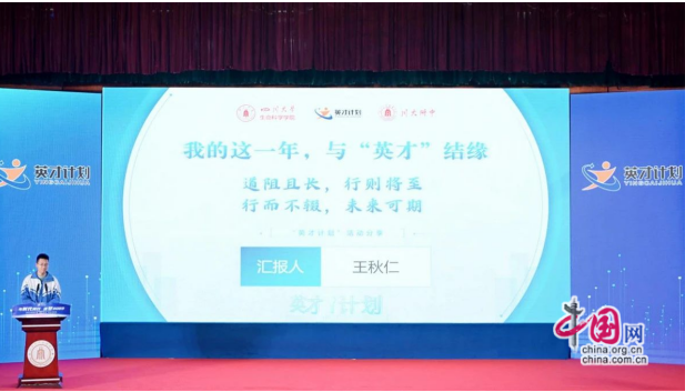 会上,师从四川大学生命科学学院林宏辉教授团队,来自川大附中的2022优秀英才学员代表王秋仁在此次见面会上分享了自己的心得体会。2022年11月,王秋仁因为“英才计划”的科研成果,受邀参加了世界顶尖科学家论坛之科学T大会,是2022“英才计划”四川省两名(生物与计算机)受邀学员之一。“晓现代科学之方法,强百折不挠之精神,养宠辱皆忘之心态。”王秋仁表示,跟随林宏辉教授不仅学习了生物学的大量知识,还学习到了实事求是的科学精神。