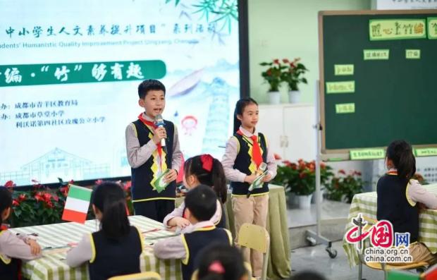 中国网3月3日讯(辜丽茜)为充分挖掘和利用成都本土非物质文化遗产方面的教育资源,吸纳国外非物质文化遗产方面的优秀资源,联动国际友好学校更好地传播中华优秀传统文化,扩大国际教育的影响力。近日,成都市青羊区“中小学生人文素养提升项目”系列活动——《匠心竹编 “竹”够有趣》云端课在草堂小学举行。活动由草堂小学和意大利利沃诺第四社区玫瑰公立小学的学生共同参与,旨在让学生了解中国非物质文化遗产、传统艺术瑰宝——竹编的基本知识,亲身体验竹编制作过程,深切感受世界非物质文化遗产的魅力。