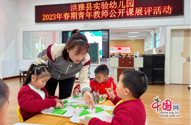 中国网讯 教师的专业成长离不开实践反思、同伴互助、专业引领。为了积极贯彻实施《3—6 岁儿童学习与发展指南》精神,加强园内教师之间的交流和学习,促进教师业务水平与教学能力的提高,提高幼儿园整体教育教学水平,近日,眉山市洪雅县实验幼儿园举行青年教师公开课展示活动。