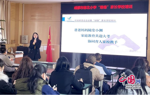 中国网3月9日讯(王馨)沟通是最美好的开始,携手是最温暖的共育。教育不是学校的单方舞台,而是家长和学校站在一起,步调一致,方能共育花开。为充分发挥家委会职能,深化家校沟通与合作,畅通家校共育渠道,真正促进家校共策、共育、共享,近日,成都市棕北小学召开了新学期校级家委会会议暨“绿缘”家长学校培训活动。