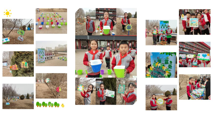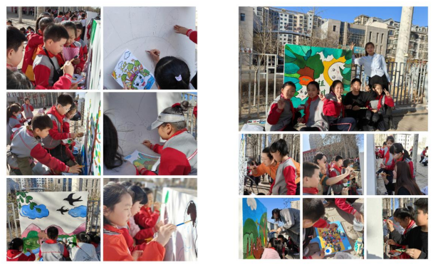 手绘绿色、播种春天。滨河小学大队部组织队员们在学校操场北墙开展“美化校园墙群”植树节主题环保活动。在美术组老师和班主任的帮助下,队员们分工合作描画线稿、调配颜料,一幅幅饱含环保理念和集体力量的墙画出炉了。墙画不仅走进了校园,更走进了孩子们的心田。