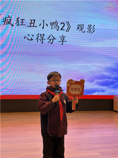 一、二年级的小朋友观看了电影《疯狂丑小鸭2》。同学们深深被剧中有些调皮又性格坚韧的丑小鸭吸引,逗趣的台词引得大家哈哈大笑,跌宕的情节又让大家为之担心,最终的胜利赢得了全场热烈的掌声。影片以幽默的形式让同学们明白了“不可沉迷于成功的喜悦,也不可迷失于失败的沮丧,遇到挫折不放弃,坚强面对,终能战胜自我,赢得胜利”的道理!