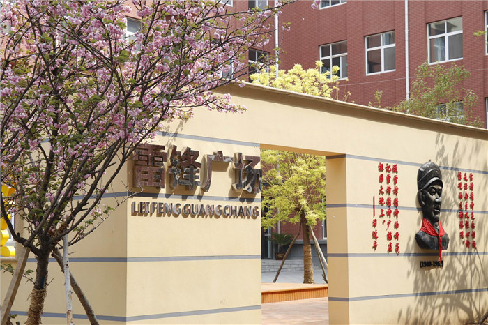 2023年3月,春日里的滕州市通盛路小学雷锋广场熠熠生辉