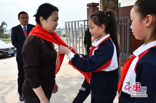 中国网讯 3月17日,赵一曼孙女陈红女士走进宜宾市一曼小学校开展红色教育调研,翠屏区老促会会长袁向东,区教育和体育局党委委员、机关党委书记陈鹏,白花镇人民政府副镇长杨云琅等陪同。