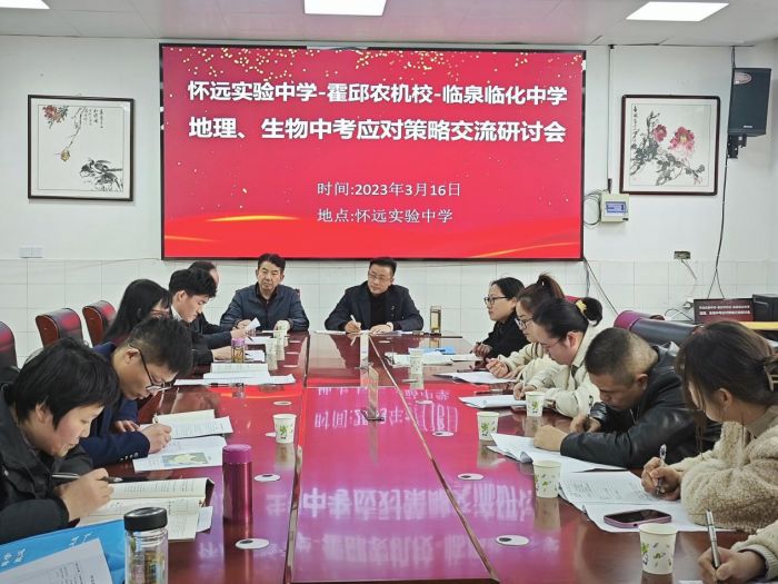 3月16日,怀远实验中学迎接霍邱农机学校、临泉临化学校来校参观学习,并举行了地理、生物中考应对策略交流研讨会。