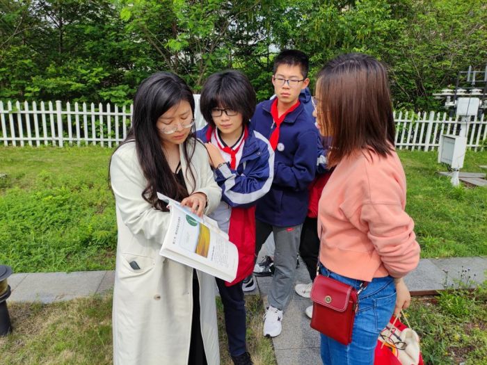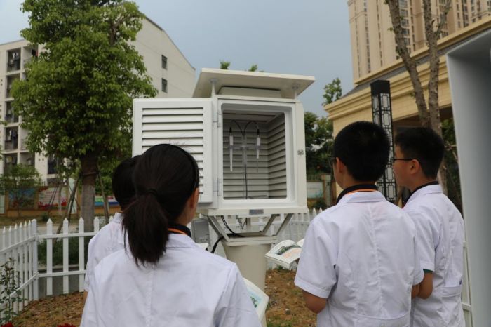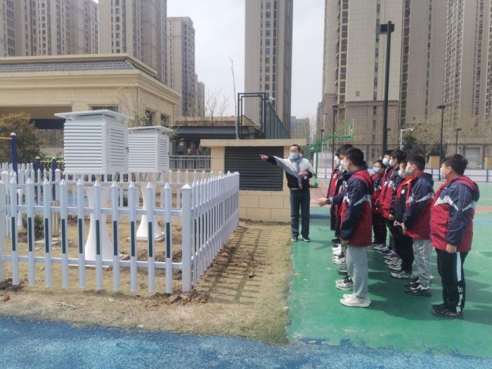 在老师的带领下,同学们有序来到校园气象站进行气象观测学习。