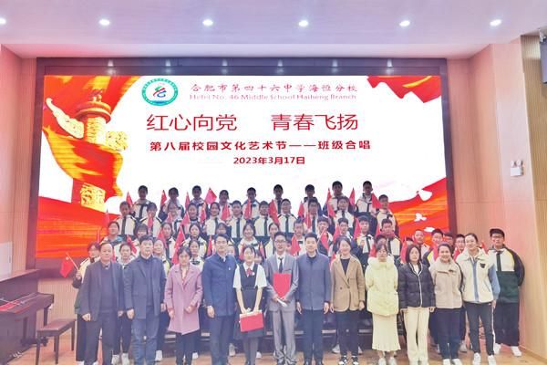 为了丰富同学们的校园生活,进一步展示班级文化,提高班级凝聚力,增进合肥46中海恒学子爱党爱国的热情,3月17日下午在学校阶梯教室举办了“红星向党,青春飞扬”班级合唱比赛活动。校长刘亮荣、副校长陈建林、校长助理沈章梅莅临现场观摩。