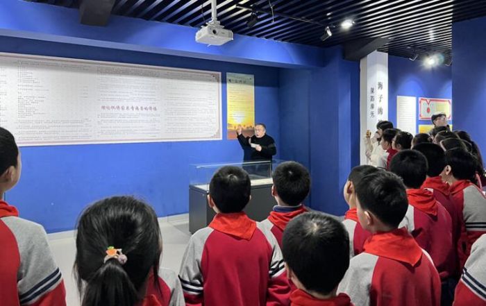 学生们来到海子纪念广场,在海子的雕像前伫立,敬献花篮。认真倾听红领巾讲解员关于“麦地诗人”海子的介绍。随后,在海子纪念馆副馆长查曙明的引导下,学生们有序地走进海子纪念馆,参观了纪念馆里五个单元的纪念展览,并着重介绍了《亚洲铜》和《面朝大海,春暖花开》两首诗歌。接着,高河镇中心学校学生代表集体朗诵海子的诗歌《以梦为马》《秋》和《面朝大海,春暖花开》。最后,师生们一起聆听了副馆长查曙明的诗朗诵《亚洲铜》。