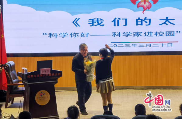 中国网3月24日讯(王李科)近日,成华区“科学你好——科学家进校园”科普活动在成都双林小学御风分校举行。该校五、六年级全体学子聆听了西昌卫星发射中心原党委书记、中科院科学家孙保卫的题为《我们的太空》的科普讲座。该校学子通过聆听科学家的讲座,探索科学的奥秘。