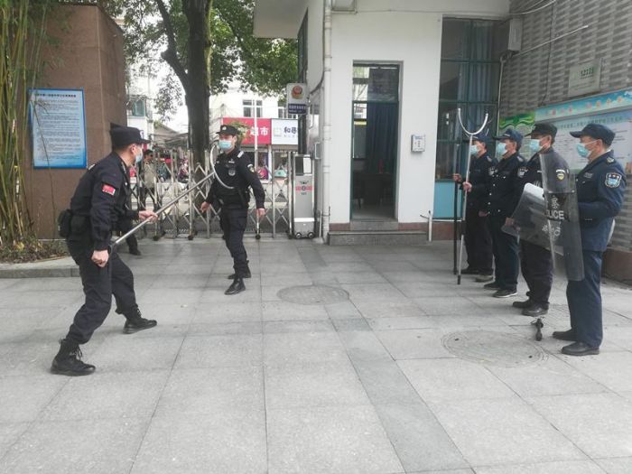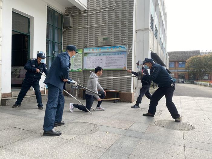 第一初中每学期都要组织学校的安保人员,开展校园日常安全防护性训练和培训,目的就是为了增强所有安保人员的安保意识,提高他们应对突发状况的处置能力,防患于未然,努力构筑校园安全防护墙。(图文/宁国市第一初级中学)