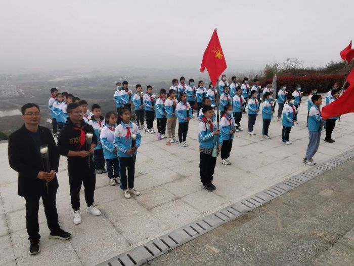 清明来临之际,庐江县石头镇中心小学组织党员教师、少先队员开展清明祭扫先烈活动。