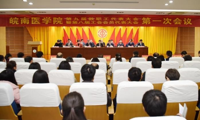 凝心聚力谋发展,笃行不怠踏新程。3月31日上午,皖南医学院第九届教职工代表大会暨第八届工会会员代表大会在图书信息楼学术报告厅隆重开幕。校领导夏劲松、廖圣宝、贾贤燕、徐朝阳、文育锋、王保中、韩永升出席会议,省教科文卫体工会主席吴海明、部分原校领导应邀参加开幕式。120名代表肩负使命,齐聚一堂,共谋发展。安徽工业大学、安徽师范大学等兄弟院校和单位发来贺信贺电。