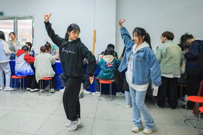 “唱腔太酷了!”“我也想学黄梅戏!”……黄梅戏表演专业2021级(1)班汪金娟向在场观众展示的《女驸马》中经典选段,瞬间“点燃全场”。从“零基础”到“行云流水”,在汪金娟看来,学习黄梅戏,不仅是学技艺,更多的是对传统文化的传承,“我们也希望通过这种互动式的艺术体验,让更多青年学生参与到文化传承中来。”除了黄梅戏,现场还有缠花、挑花等地域性非物质文化遗产的静态、动态展示与体验,同样收获了众多“粉丝”。