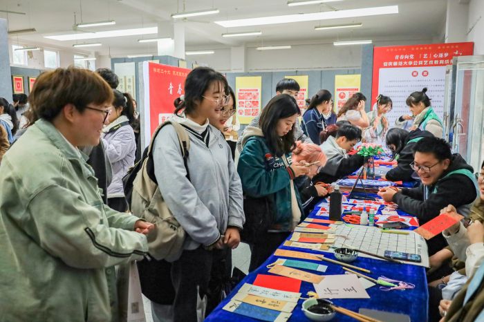 8种艺术呈现形式、6位文化“传承人”讲解、100余幅优秀作品集结亮相……近日,安庆师范大学举办“青春向党 ‘艺’心逐梦”公共艺术教育成果展。72个团支部到现场开展团日活动,35个教学班到现场开展《思想道德与法治》课程实践课,15000余名学生通过“沉浸式”体验同上公共艺术教育展里的青春思政课。