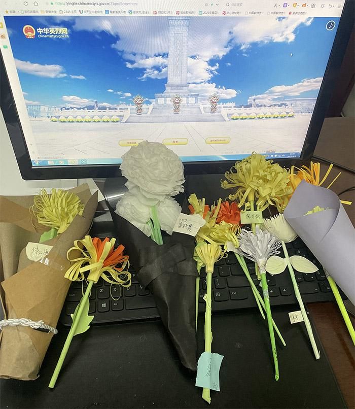 学校积极组织全体学生开展了网上祭扫英雄烈士、观看红色影片《为了和平》并写观后感、手工制作菊花等系列活动,以此表达学生们对先烈的崇敬、缅怀之情。