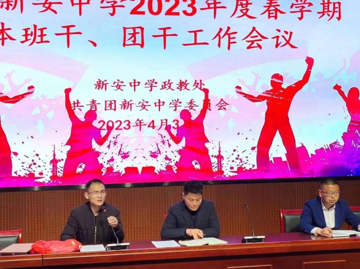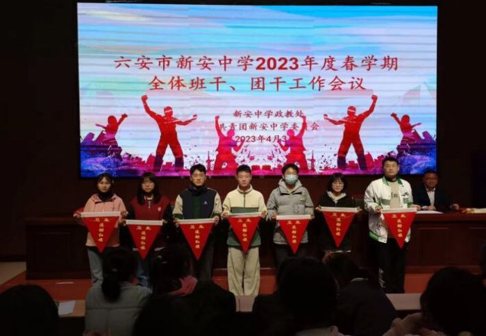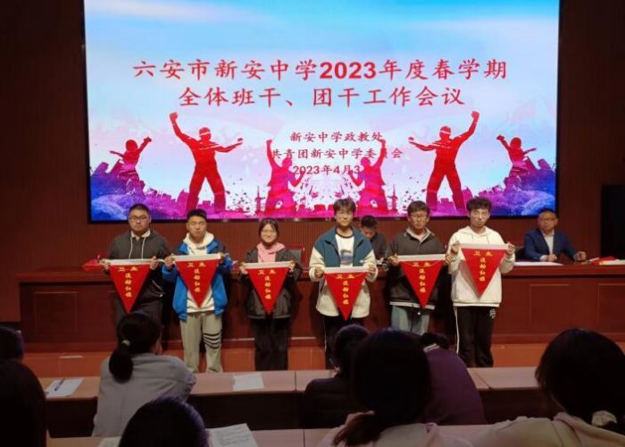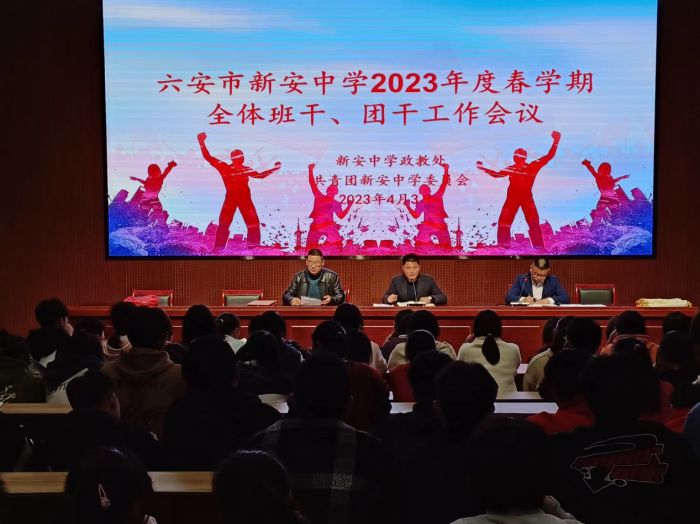 为进一步提高学生干部整体素质队伍建设,扎实开展德育工作和落实班团干部工作任务,4月3日晚,六安市新安中学政教处和团委会在科学馆报告厅隆重召开春学期全体班干、团干工作会议。参加大会的有全校三个年级的班长、团支书共一百五十余人,政教处主任姚俊、副主任李来宝、团委会副书记田俊和姜飞老师共同出席了会议,会议由姚俊主持。