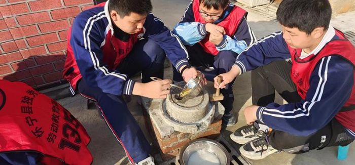 在基地教官们的精心策划与带领下,同学们亲身体验了劳动教育、国防教育、感恩教育和生命急救知识。在生活技能培养活动中,同学们利用石磨磨豆浆、打豆腐,大家分工合作、默契配合,一起感受劳动的艰辛、体会劳动的乐趣、享受收获劳动成果的喜悦。