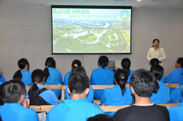 同学们在研学中心观看了《淮上江南 天赋湿地》宣传片,利辛中学路利勤老师讲解了湿地保护知识和利辛湿地概况,在路利勤老师的带领下,大家共同宣誓,响应保护湿地的号召,维护生态平衡,保护好美丽家园。