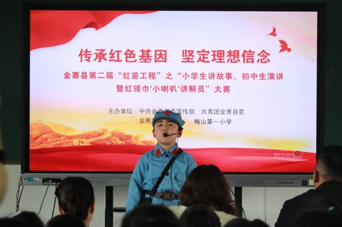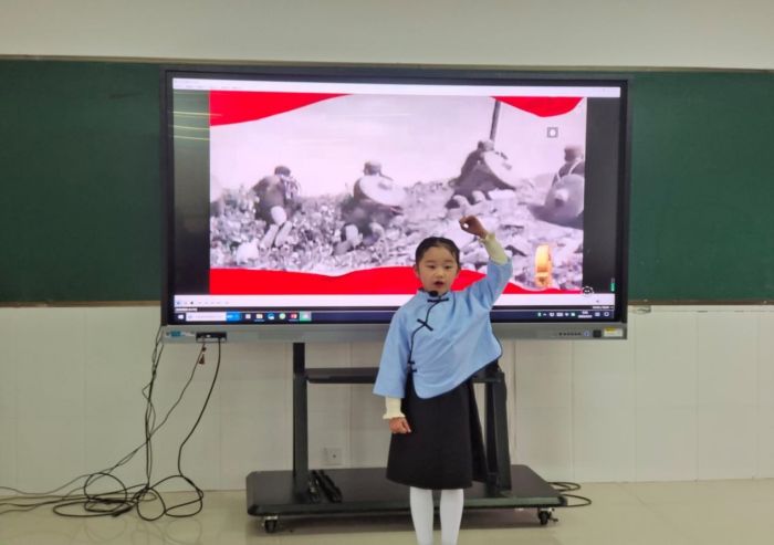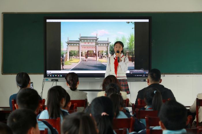 红领巾讲解员们落落大方,运用精美视频、背景音乐等媒体元素,用生动的语言、声情并茂地讲解,带领大家走进家乡金寨革命烈士陵园、红色小镇汤家汇以及四块银元的来历等红色场景。