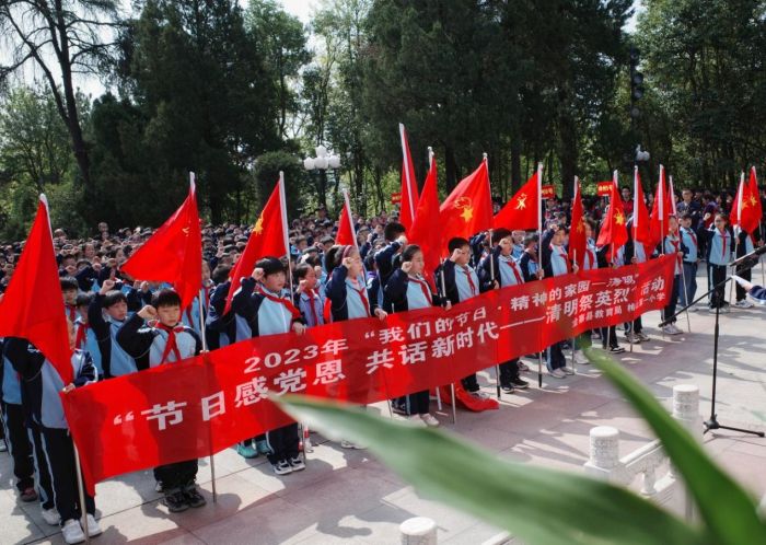 在清明节来临期间,大队部组织三至六年级全体队员开展走访红色场馆实践活动,并在金寨县烈士纪念碑前举行简短又隆重的仪式。参加活动的全体教师和少先队员排着整齐的队伍,向革命烈士敬献花圈,鞠躬默哀,寄托无尽哀思。