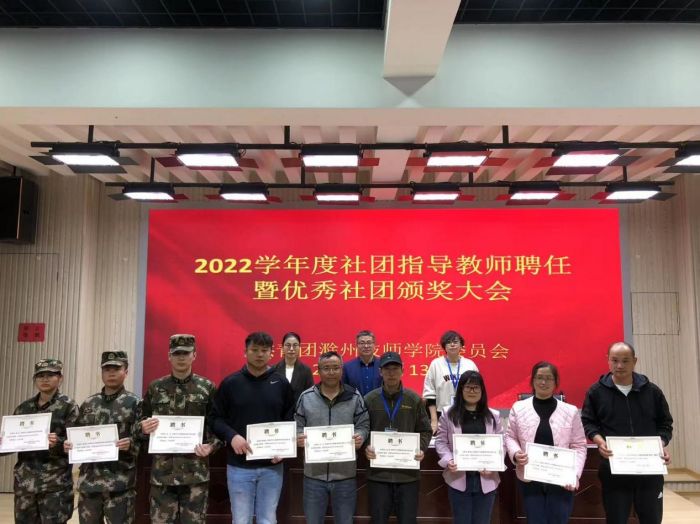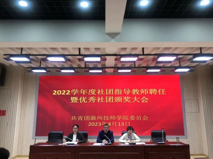 4月13日下午,安徽滁州技师学院团委在土木楼三楼报告厅召开2022学年社团指导教师聘任暨优秀社团颁奖大会,校党委副书记、纪委书记施亮、校团委书记张婷婷、团委副书记曹锐、蒋凌毅、汪明辉、各社团负责人、指导教师和社联工作人员参加了大会,大会由张婷婷主持。