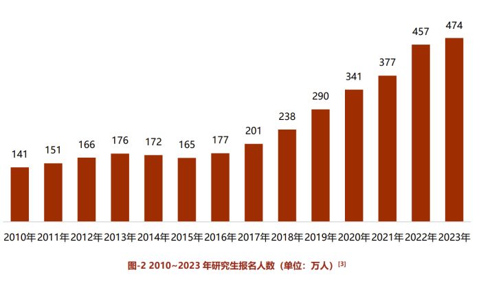 图:2010~2023年研究生报名人数(单位:万人)数据来源:教育部