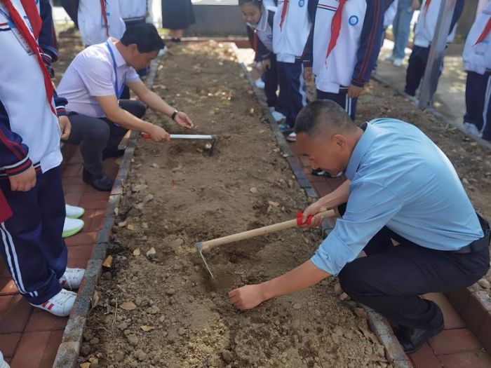 老师们也带头耕作播种,弘扬劳动的美德。葫芦种植激发了同学们的种植兴趣,今天播种了葫芦种子是种植葫芦的开始,也是播下梦想的种子,后期的葫芦种植维护仍需要同学们精心呵护,相信在大家的辛勤努力下,定会收获希望的未来。
