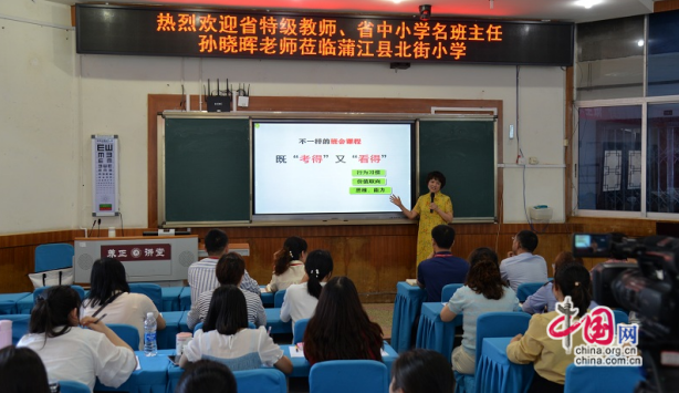 中国网4月20日讯(董容榕)为贯彻《教育部关于进一步加强中小学班主任工作意见》,加强学校班主任队伍建设工作,培养适应时代要求的高素质、专业化的班主任队伍,提高学校德育工作时效性,加快学校的发展。4月19日,成都市蒲江县北街小学邀请正高级教师、四川省特级教师、四川省中小学名班主任、成都市特级教师、成都市“常青树”计划学术导师工作室领衔人、成都市双流区名班主任工作室导师、成都棠湖外国语学校初中研培处主任孙晓晖老师,为北街小学全体教师作题为《修身班会课程:一种全新的班级德育样态》的专题讲座。