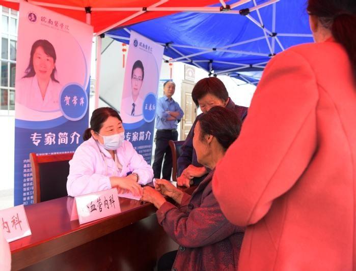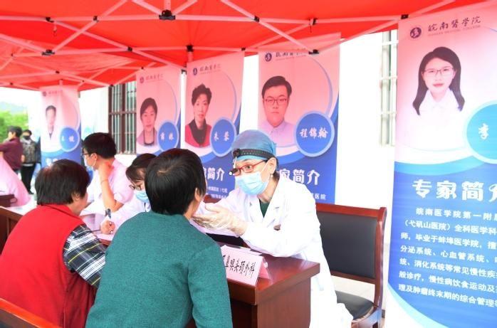 义诊团队由校党委统战部负责人带队,由骨科、眼科、心血管内科、耳鼻喉头颈外科、儿科、内分泌科、康复医学科、全科医学科、超声医学科、电生理科等科室14名专家和医护工作者组成,把健康送到老百姓身边。
