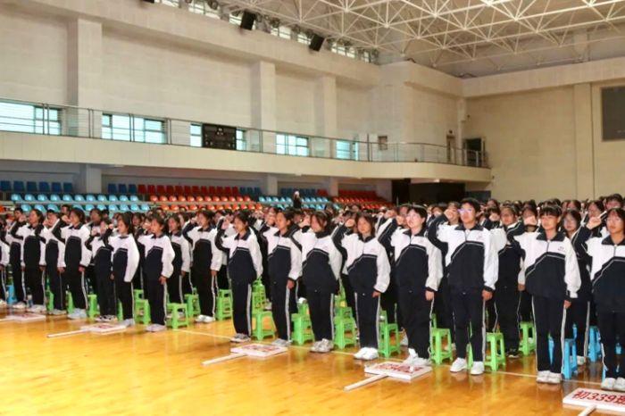 344班崔焱杰同学领誓:热爱祖国,热爱集体。心怀感恩,励志奋进。强健体魄,完善人格。不破不立,不屈不挠。用信心战胜一切,用汗水铸就梦想!
