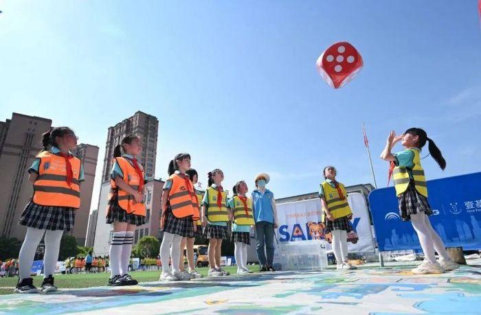 活动过程中,首府实验小学的少先队员们通过交通安全训练营、动画视频、交通安全绘本、交通安全操等涵盖“看、听、读、写、体验”的全方位体验形式,学习交通安全知识,掌握应对避险技能。篮球场上,孩子们积极参与“认识大货车内轮差”“认识车辆盲区”“安全头盔接力赛”“交通安全出行棋”“探索神奇的盒子”“校车安全乘车体验”“安全带的使用方法”等游戏体验项目,在“沉浸式”的模拟体验中,真切感受不戴头盔和不系安全带的危险性,了解到出行时如何看见危险、保护自己,提升安全意识。四楼报告厅,孩子们在志愿者的带领下观看交通安全视频、阅读交通安全绘本,并用彩笔绘出自己对交通安全的理解,在轻松愉悦的氛围中感知养成良好出行习惯的重要性。