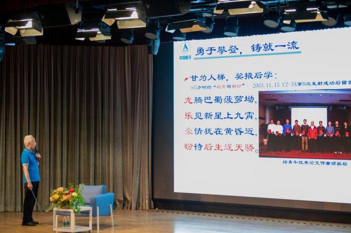讲座开始前,音响老师播放了央视新闻客户端的精美视频:《特别致敬·我还是从前那个少年 三位“80后”的别样青春》,我们看到了龙爷爷为火箭事业永葆青春的模样。